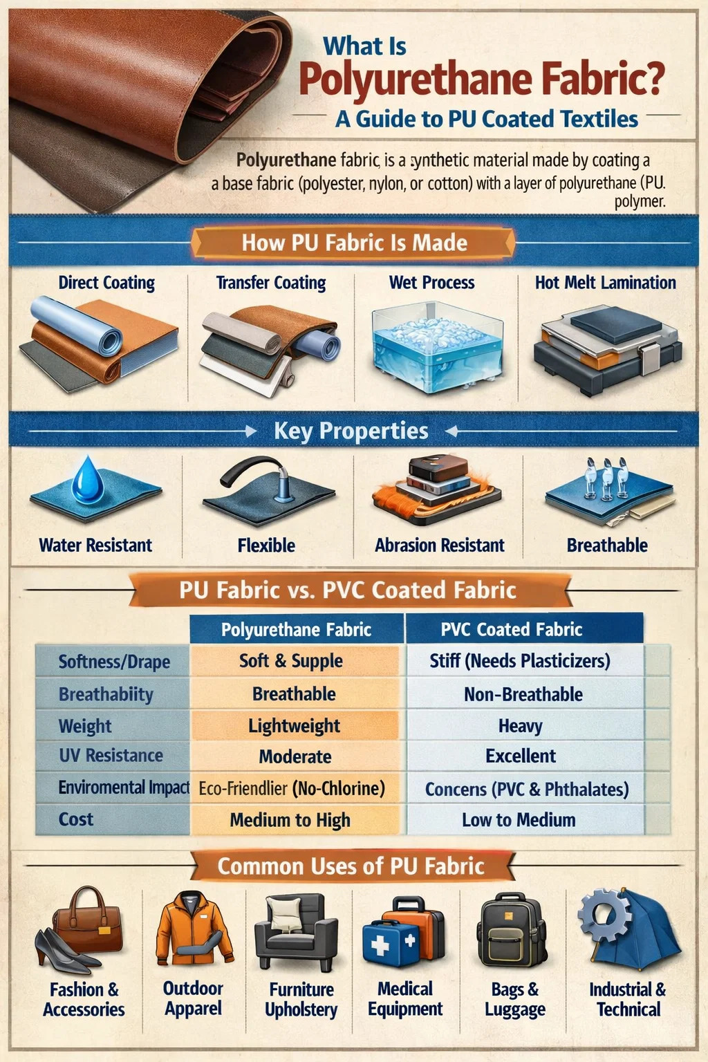 Kaikki polyuretaanikankaat eivät ole samanlaisia. Termi kattaa laajan joukon materiaaleja, jotka erottuvat niiden perussubstraatista, pinnoiterakenteesta ja suunnitellusta suorituskykyprofiilista.